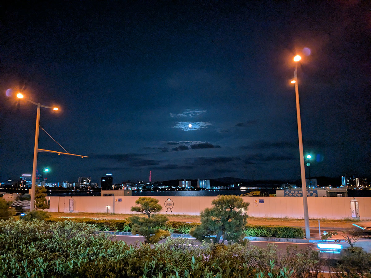 宍道湖の湖面の上に月がとってもきれいに出てました。解放感のあるビアガーデンでの納涼会。
